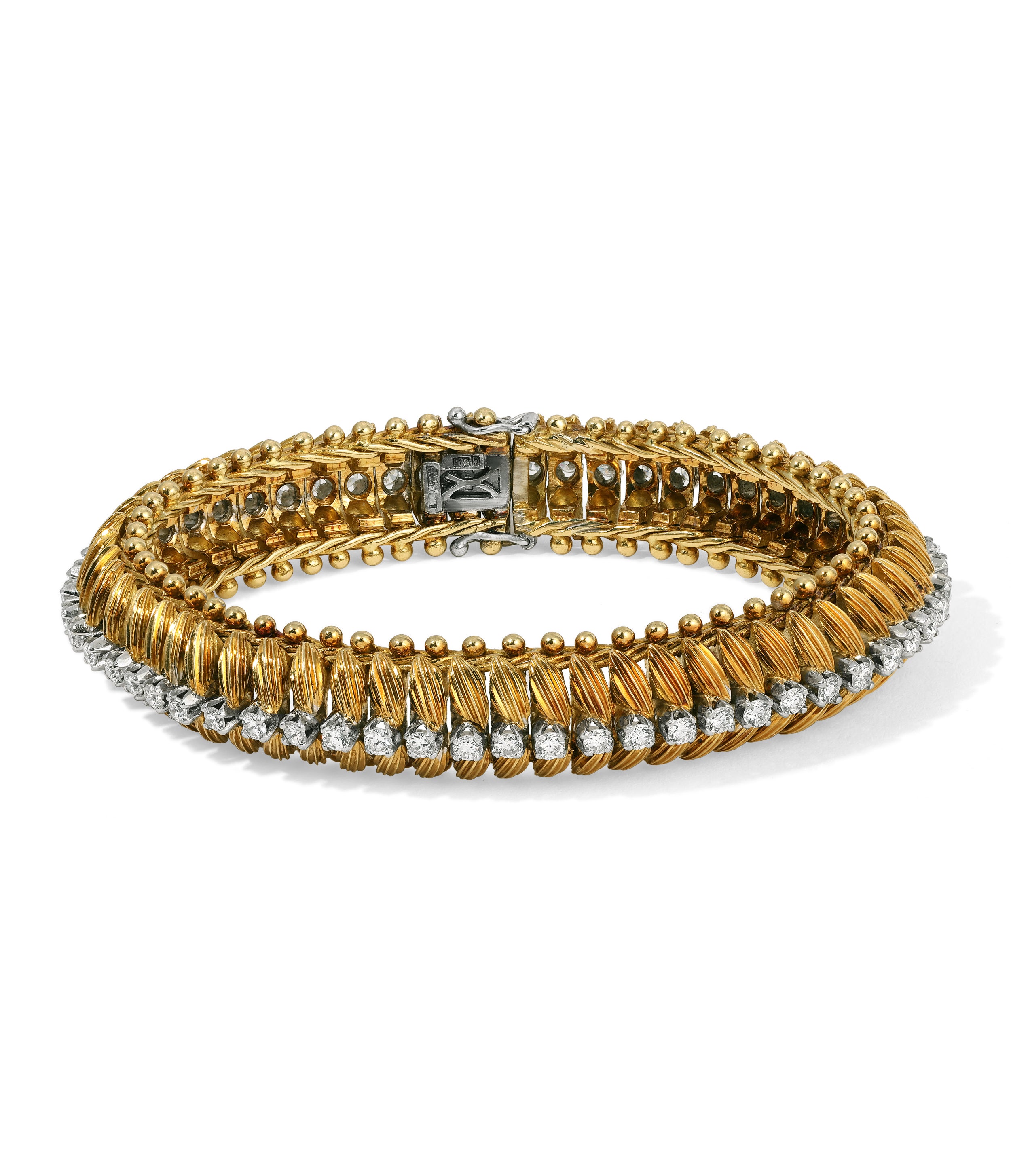 18k yellow gold, 4 links, mirror-finish. Length 7 1/4 inches. Width 5/8 inch. Total weight: 69.00 grams.