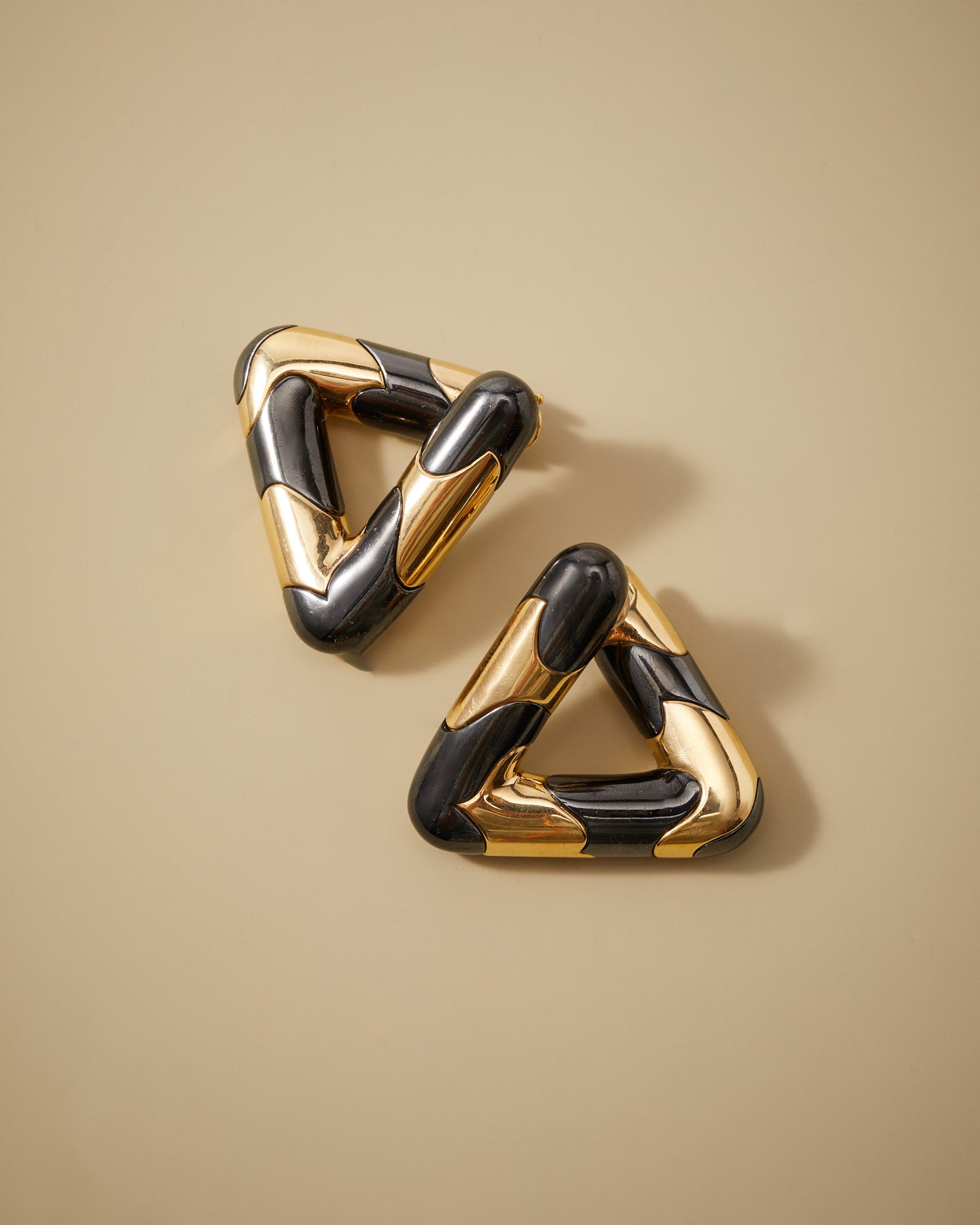 18k yellow gold and stainless steel. Measures 1 9/16 x ¾ in. Total weight: 66.70 grams. Stamped Marina B., 750, Metal, 1987, serial W931 MB.