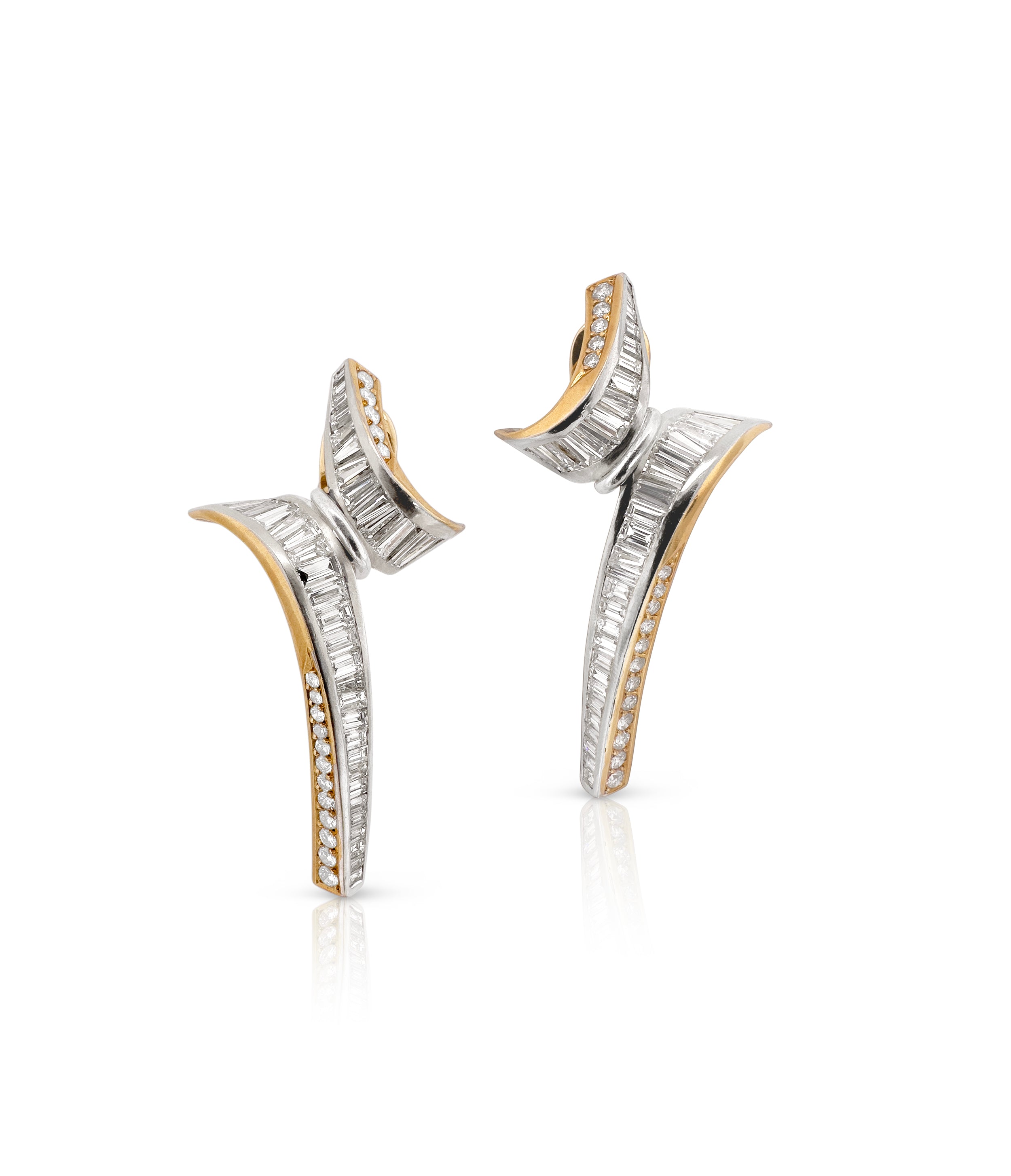 18k white gold, 382 round and 174 baguette diamonds weighing 13.78 carats. Total weight: 37.7 grams.