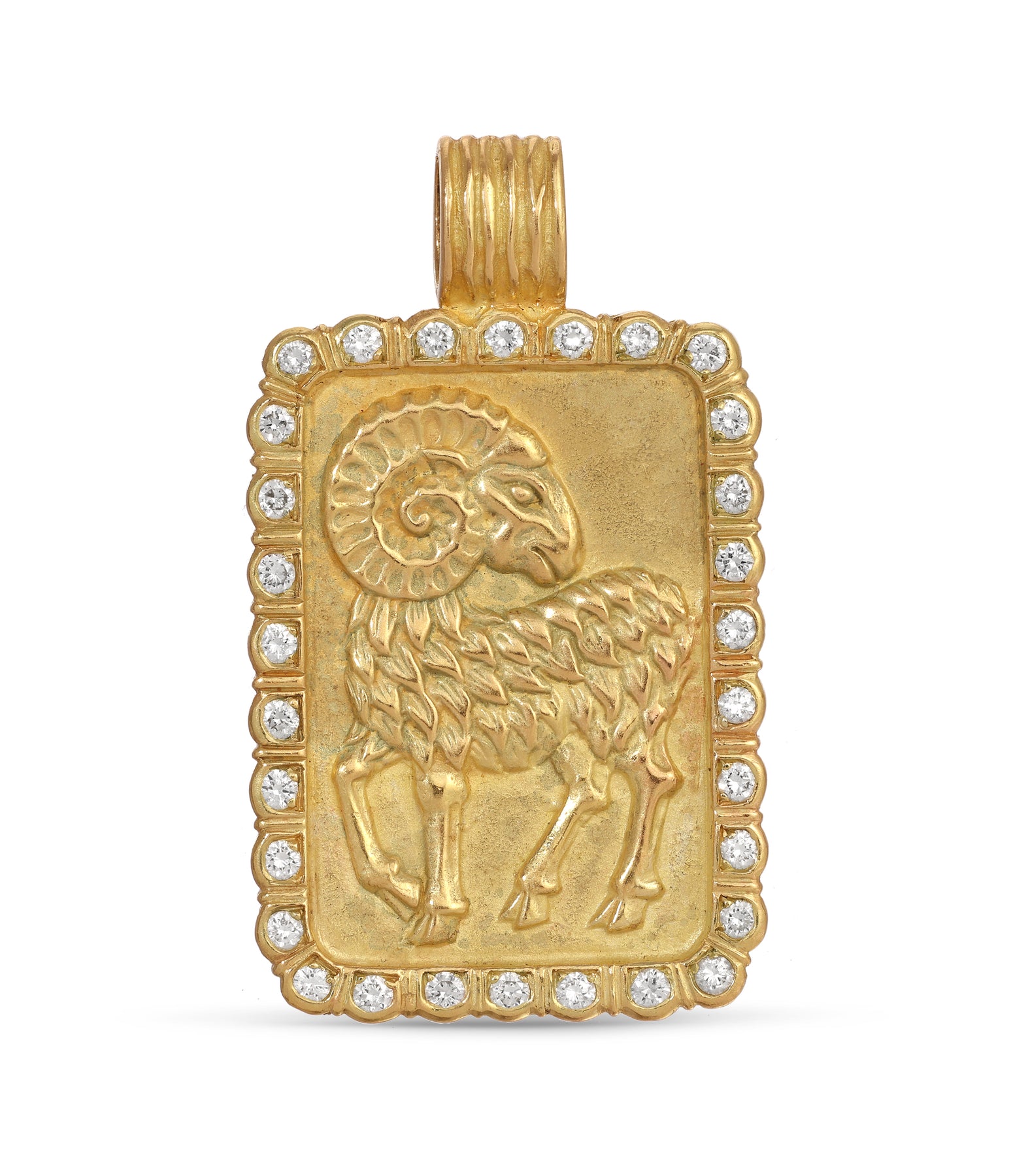 Fred Diamond Aries Zodiac Pendant in 18k Gold